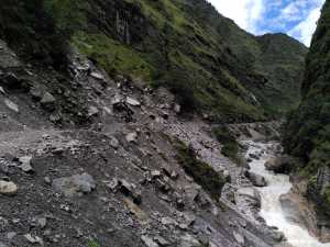 Auf jeden Fall ist das alles zu viel und wir beschließen abzubrechen und zurück zu wandern. Natürlich den schlimmen Weg jetzt auch noch runter, dabei muss Noga gestützt werden, was ein Akt..... Wir kommen einigermaßen fertig unten an, jetzt Jeep organisieren um Noga ins Krankenhaus nach Munsyari zu schaffen. Das war's.