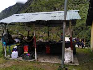 Der 2. Teil unserer Wanderung stand unter keinem guten Stern, es fing an damit das es immer wieder regnete und es sah nicht so aus als wollte es besser werden. Am Morgen machten die Porter Schwierigkeiten, es war einfach zu viel für die zu tragen , von 4 Pferdelasten auf 7 Porter..